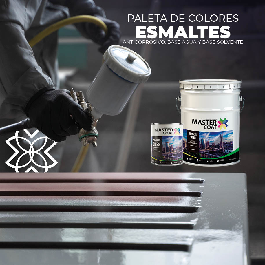 BÁSICOS PARA ESMALTESLa familia de esmaltes Master Coat ofrece 4 distintos productos que comparten la misma paleta de colores básicos: el Esmalte estirenado SR28, Esmalte secado normal SN24, Esmalte base Agua Aqua24, Master Brill y Esmalte acrílico RAM